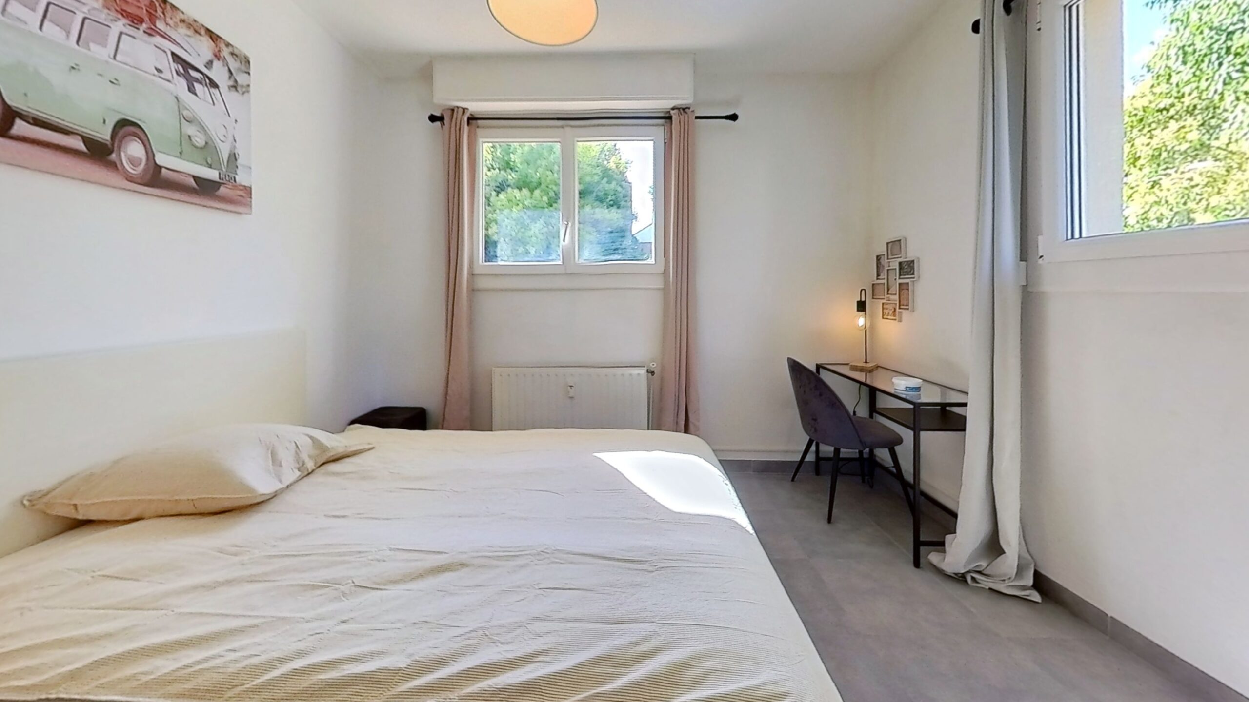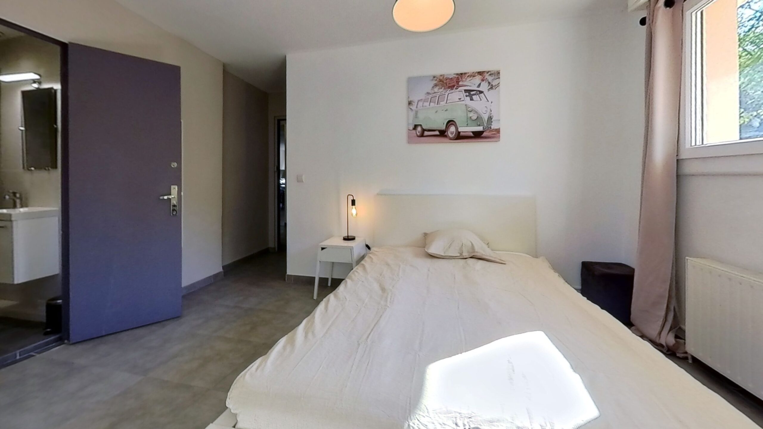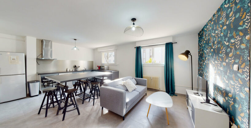 Il est composé d’une grande pièce de vie, avec une cuisine meublée et équipée, d’un cellier avec lave-linge/sèche-linge et rangements, 5 chambres meublées et équipées, un wc indépendant et 5 salles d’eau privatives, qui feront le bonheur des colocataires.